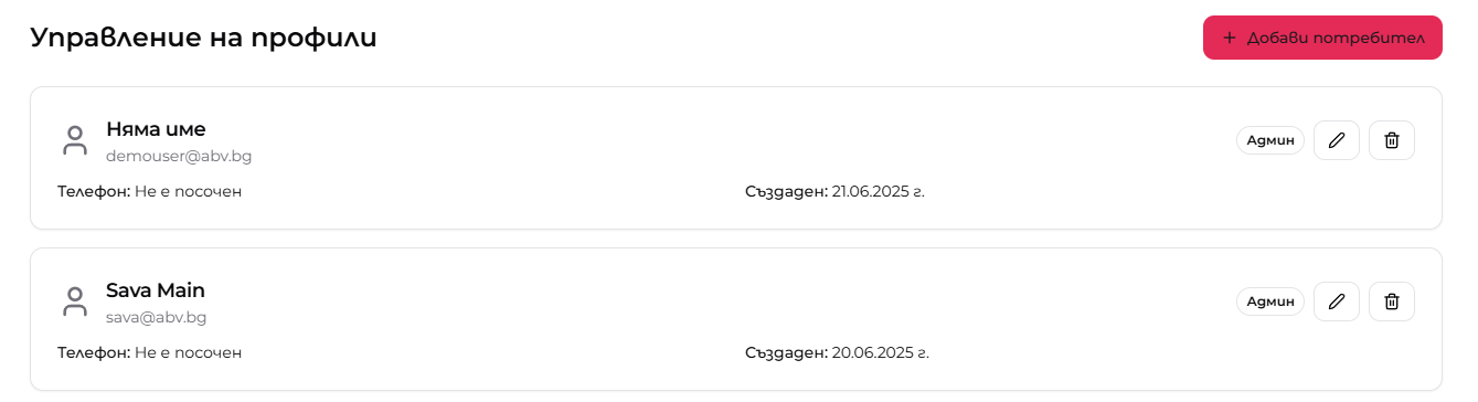 Този модул предоставя цялостна функционалност за администриране на потребителски профили в системата.
